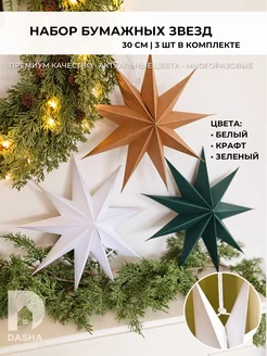 Звезда бумажная объемная новогодняя набор для декора 30см