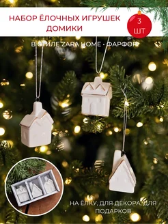 Елочные игрушки новогодние набор 3 домики украшение на елку