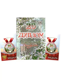 Подарочный набор серебряная свадьба 25 лет диплом и медали