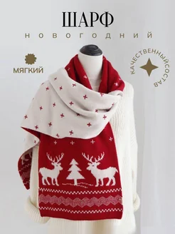 Двусторонний вязанный шарф с новогодним рисунком