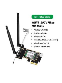 Адаптер WiFi 6 Intel AX200 Bluetooth 5.2 PCI-E