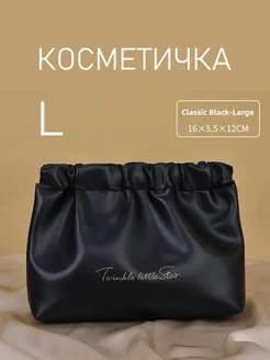 Косметичка женская черная 16×5 5×12 см PU кожа