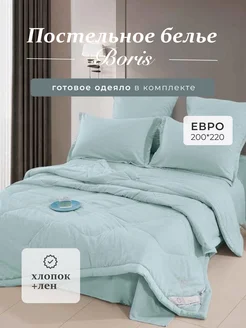 Постельное белье с одеялом Евро, хлопок, бархатный сатин
