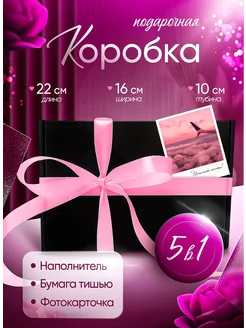 Подарочная коробка черная 22*16*10 с розовой лентой