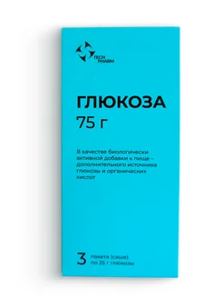 Глюкоза чистая в порошке, 3 пакета по 25г