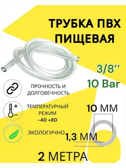 Шланг пвх пищевой 10мм 2 метра (силиконовая трубка)