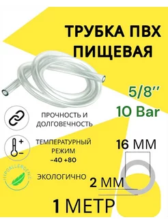 Шланг ПВХ пищевой 16 мм 1 метр (трубка прозрачная)