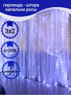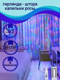 Гирлянда штора капля россы занавес водопад 3х2 с пультом