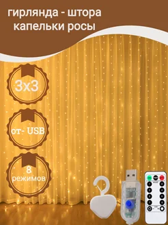 Гирлянда штора капля россы занавес водопад 3х3 с пультом