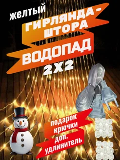 Гирлянда штора "Водопад" 2х2 желтого цвета