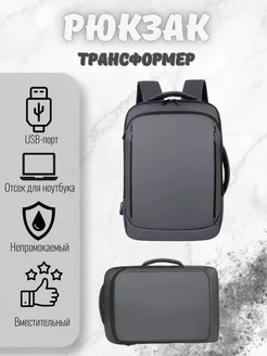 Рюкзак трансформер мужской с USB для ноутбука серый