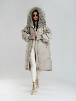 Пуховик оверсайз зимний длинный с натуральным мехом