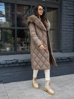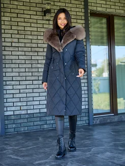 Пуховик зимний длинный с мехом