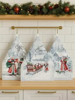 Полотенце кухонное рогожка с петелькой набор 3 шт
