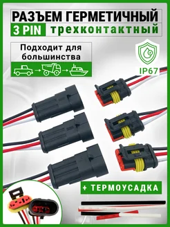 Разъем герметичный 3 контакта штекер-гнездо (мама+папа)