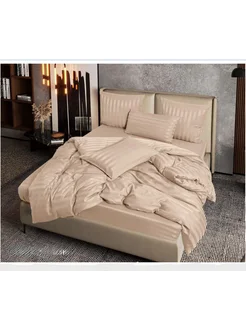 Постельное белье 1.5 спальное на резинке страйп сатин