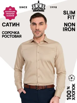 Рубашка сатин приталенная NON IRON ростовая Slim Fit