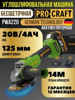 Аккумуляторная шлифмашина угловая болгарка Прокрафт PWA 220