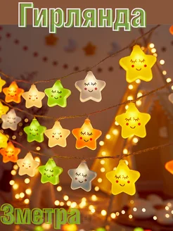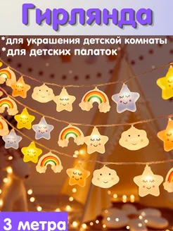 Гирлянда детская на батарейках разноцветные звездочки 3м