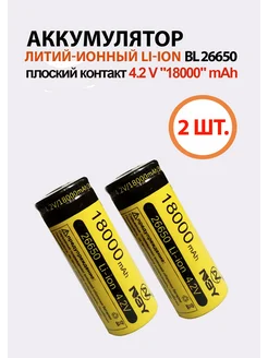 2шт Аккумулятор Li-ion 26650 18000mAh 4 2V плоский контакт