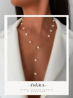 колье на шею с жемчугом длинное вечернее