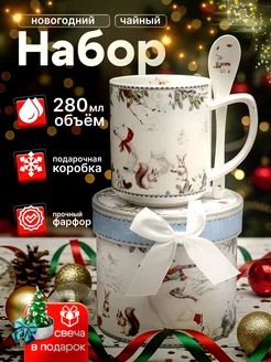 Новогодний чайный набор кружка с ложкой в подарочной коробке