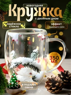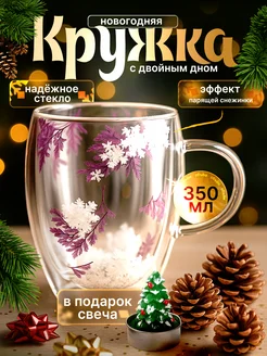 Новогодняя кружка с двойными стенками для чая с сухоцветами