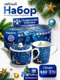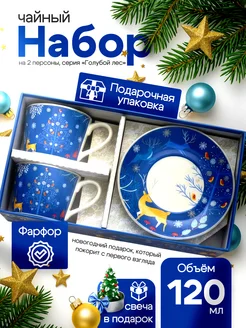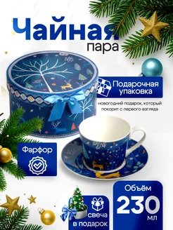 Новогодняя чайная пара набор блюдце и кружка подарок