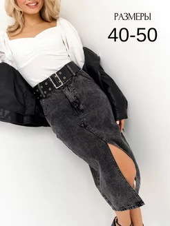 Юбка джинсовая миди с разрезом