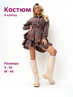 Костюм в клетку рубашка с юбкой