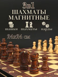 Шахматы шашки и нарды магнитные деревянные 24х24