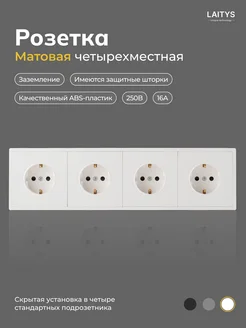 Белая матовая четверная розетка с заземлением