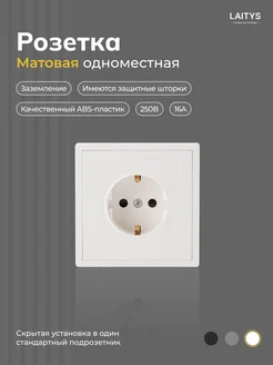 Одинарная Матовая белая розетка с заземлением