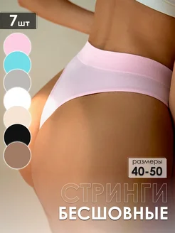 Трусы женские стринги бесшовные высокие набор 7 шт