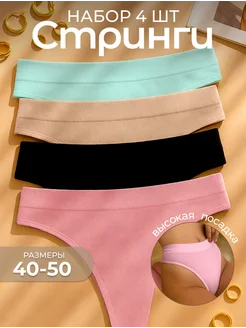Трусы женские стринги бесшовные высокие набор 4 шт