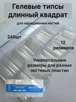 Гелевые типсы длинный квадрат для наращивания ногтей
