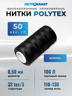 Нитки для шитья 0,5мм полиэфирные Polytex черные, 32tex*3