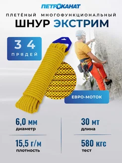 Веревка альпинистская, страховочная 6,0 мм, тест - 580 кгс