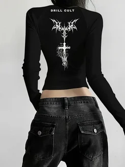Лонгслив черный с принтом крест
