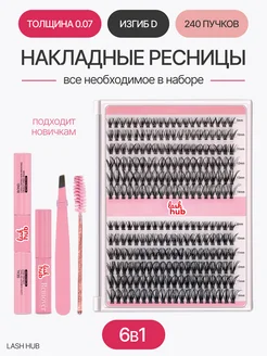 Набор 6в1 накладных ресниц Изгиб D 240шт