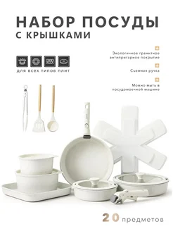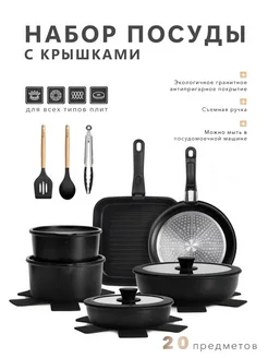 Набор посуды с крышками съемная ручка 20 предметов