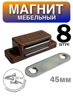 Магнит 45 мм мебельный коричневый 8 штук с саморезами