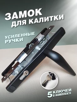 Калиточный замок + утолщенные черные ручки+80мм(с вертушкой)