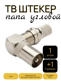 ТВ штекер угловой папа и f разъем RG6 1шт
