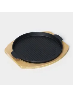 Сковорода чугунная на деревянной подставке «Круг. Гриль», 27