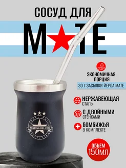 Калабас для мате "MINI" черный 150 мл. + Бомбижья 17,5 см