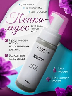Очищающая пенка мусс для умывания лица и наращенных ресниц