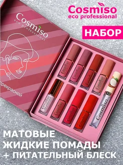 Набор жидких матовых помад и блеска для губ 9 шт