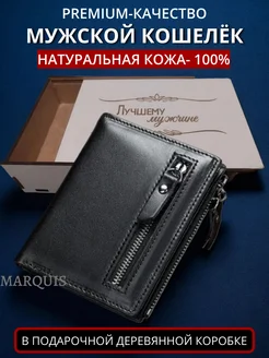 Кошелёк из натуральной кожи бумажник чёрный портмоне