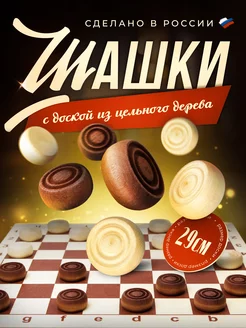Шашки деревянные с доской 29x29 см, Настольная игра
